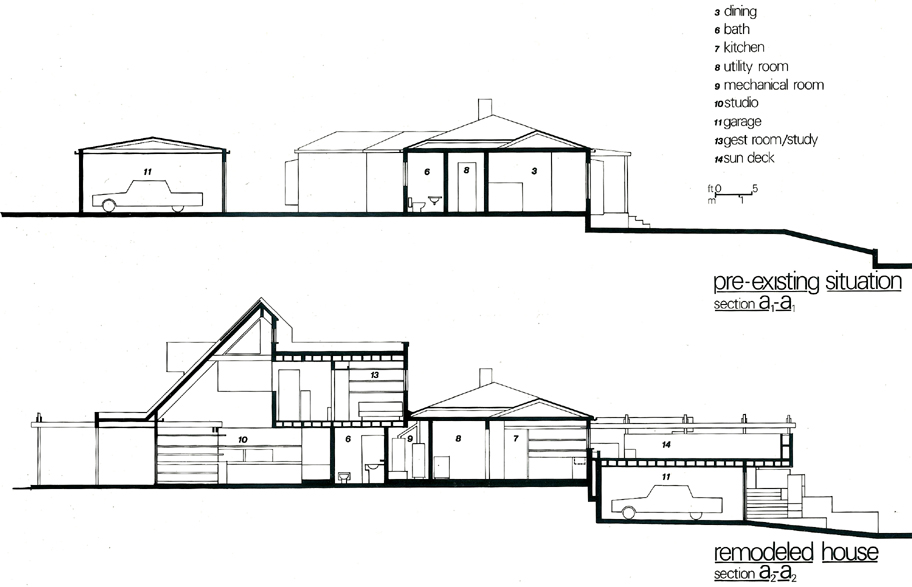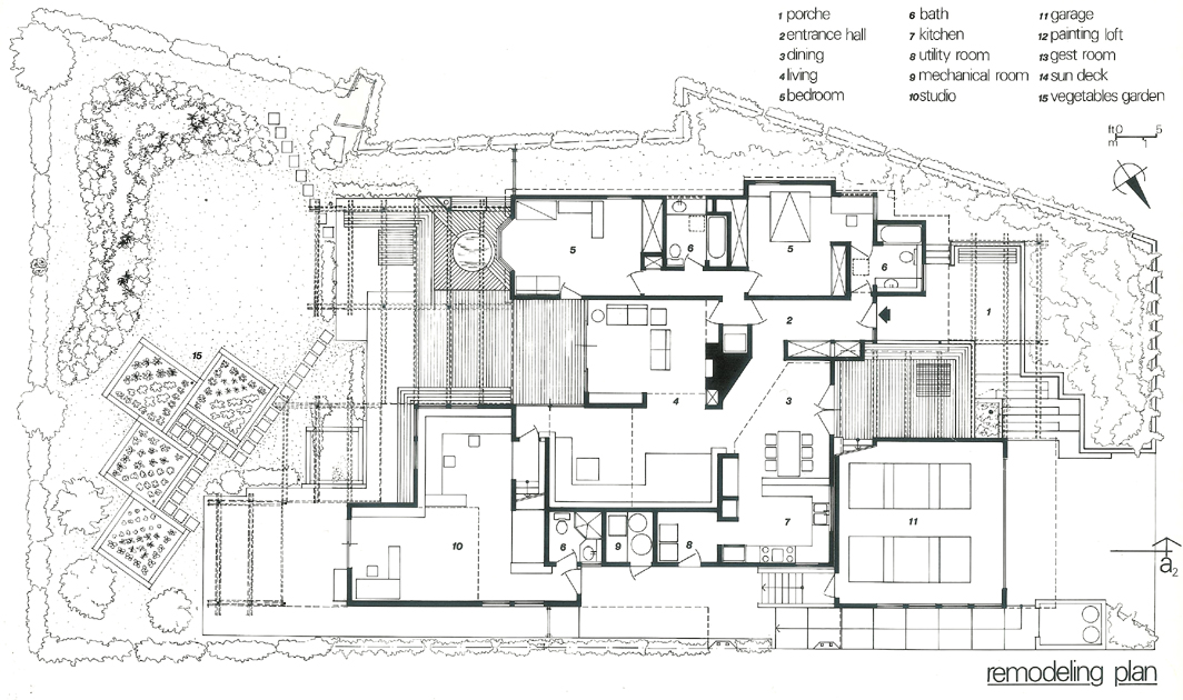 Over the bones of a 1930’s house, we expanded it and added a 1,400 square-foot studio in order to create a live-work environment. The energy-conscious design (the term “sustainability” had not yet been imported into the daily vocabulary.)