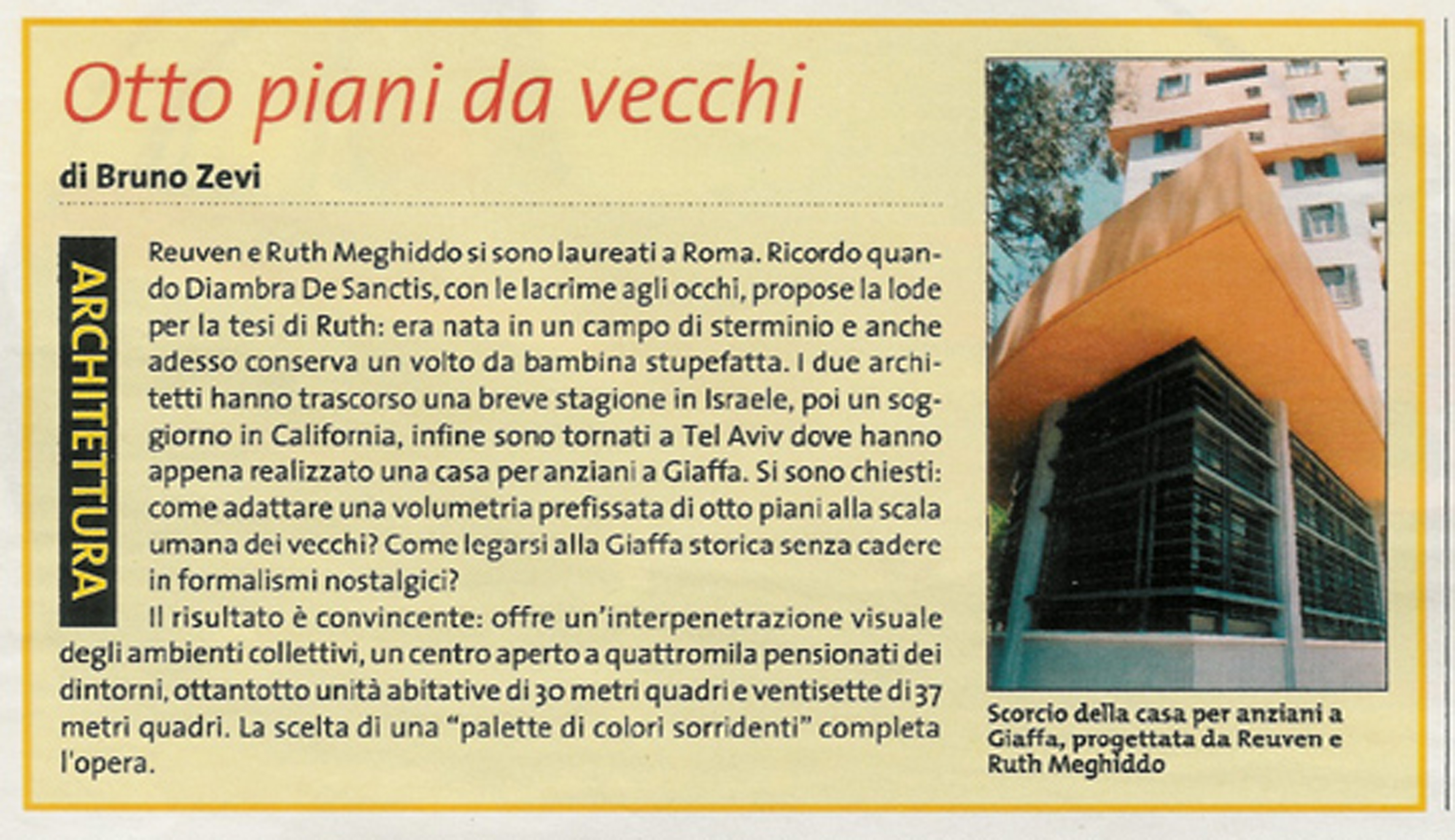Rick Meghiddo, Ruth Meghiddo, Meghiddo Architects, www.architectureawareness.com , www.rick-RE.com , www.naturaltowergarden.com , L’Espresso, Bruno Zevi, Housing for the Elderly, Jaffa, Tel Aviv, Israel